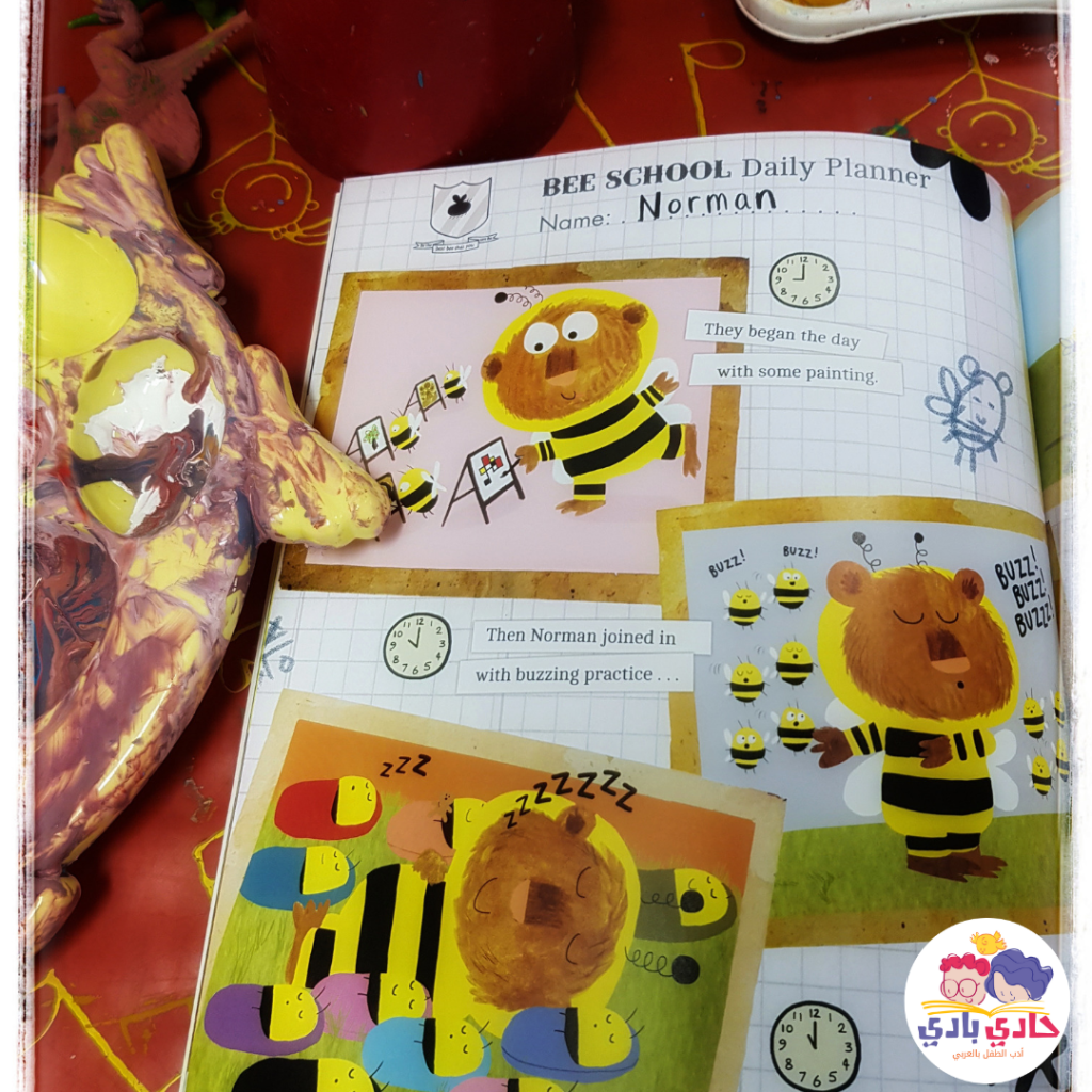 اتنكر الدب نورمان في زي نحلة ودخل مدرسة النحل. لون وشم الورد، ده حتي أخد درس الززززززن بتاعهم. و زي ما اتعلم دروسهم، علم النحل كمان ألعاب كتيرة و بقي صاحبهم اللذيذ أبو دم خفيف. بس ايميليا النحلة الذكية كانت مستغرباه طول الوقت “انت كبير قوي يا نورمان كده ازاي؟” ، أصل أنا نحلة مميزة ومختلفة. لحد ما في يوم ايميليا اكتشفت ان نورمان دب مش نحلة. ياتري ايه اللي هيحصل بعد كده؟ هيعرف ياخد العسل اللي كان عايزه ؟ ولا هيعملوا ايه معاه ايه؟