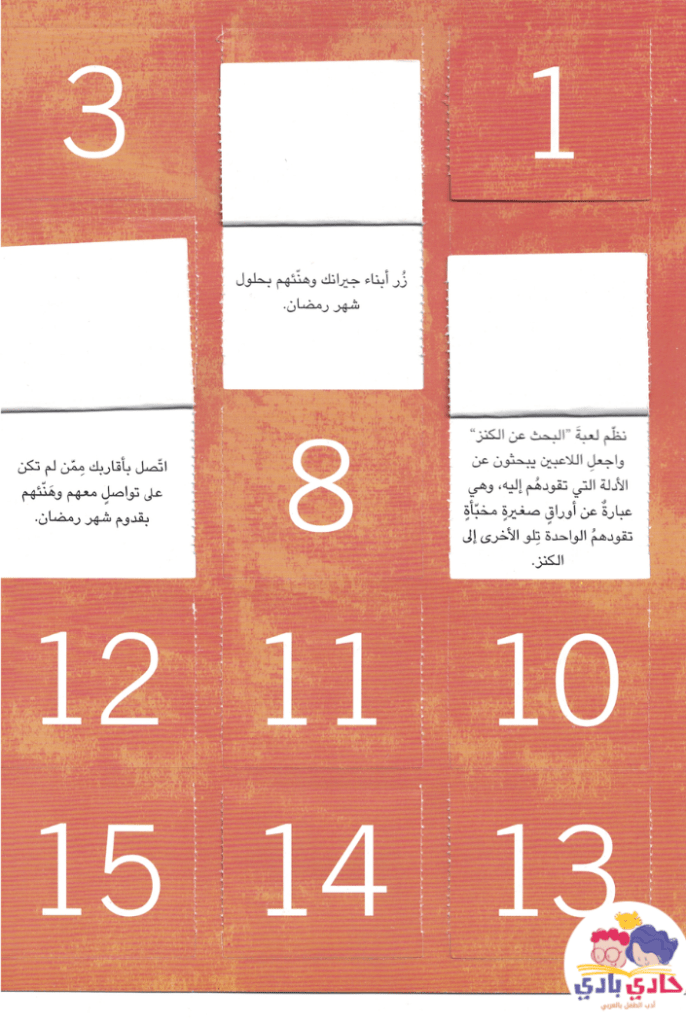 مرفق أيضا مع الكتاب، نتيجة تحتوي على 30 شباك مرقم ليكتشف الطفل وأسرته نشاطا لكل يوم خلال الشهر الكريم؛ وتتراوح الأنشطة بين فعل الخير والقيام بشعائر دينية والألعاب الطريفة. اتسمت بعض الأنشطة في النتيجة الرمضانية بالنصح العام، لذلك كنا نتمنى أن تكون أنشطة النتيجة أكثر وضوحا وأسهل تطبيقا للسن المقترح.
