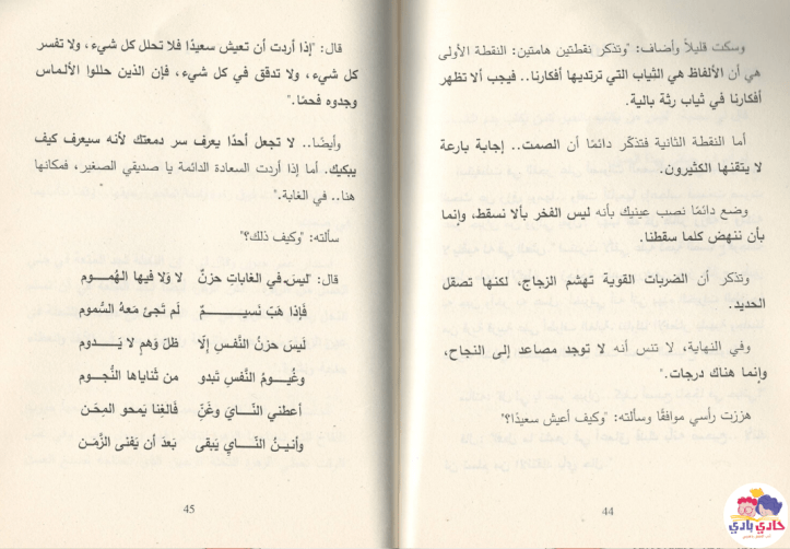 كل ذلك تغير عندما أتى جبران لاصطحاب وسيم إلى رحلة عبر الغابة. يحكي جبران لوسيم عن طفولته الصعبة ويشرح له بعض من الجمل والتعبيرات ليفهم بها “خلاصة ما أراد أن يقوله للناس”. ولم يتوقف الأمر عند جبران بل ذهب وسيم بصحبة توفيق الحكيم وحماره إلى الريف وبعدها في رحلة نيلية مع أنيس منصور خاتما زيارات الجزء الأول بمكتبة العقاد حاكيا للصبي عن حبه للقراءة والكتب.