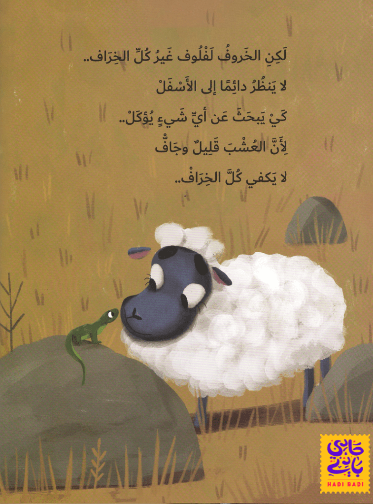 تحكي الكاتبة صفاء عمير عن خروف فضولي يحب الاستكشاف، لتلقي الضوء على صفات يتحلى بها كل الأطفال الصغار حتى يبدأ الكبار في نهرها ومحاولة السيطرة عليها خوفا من المتاعب التي قد تصاحبها من بطء وتأخير بالإضافة إلى الكثير من الأسئلة التي تبدو وكأن ليس لها نهاية. بطريقة بسيطة غير مباشرة، تذكرنا الكاتبة بأهمية التوقف وتأمل ما يحيط بنا وتحثنا كبارا وصغارا على الملاحظة والبحث، فمن يعلم ما الذي يمكن أن نجده إذا أطلقنا لفضولنا وروحنا الاستكشافية العنان !