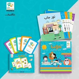 لو بتدوروا على موارد تعليمية بتستخدم الفصحى المبسطة القريبة من اللغة اللي بيتكلم بيها الطفل، ننصح بمنهج كلامنا لتعليم اللغة العربية اللي بيضم 10 قصص من تأليف ورسم مجموعة من مؤلفي ورسامي الأطفال المميزين زي هديل غنيم ومنار هزاع ورحاب بسام وسهيلة خالد ومي عمرو نعيم، للتدريب على القراية المتدرجة من خلال خمس مستويات ده بالإضافة إلى بطاقات الحروف والكلمات. منهجية “كلامنا” بتعتمد على استخدام الصوتيات (Kalamna Phonics™️) واختيار المفردات المشتركة بين العامية والفصحى لتقديم كلمات ومواضيع من حياة الطفل اليومية.
