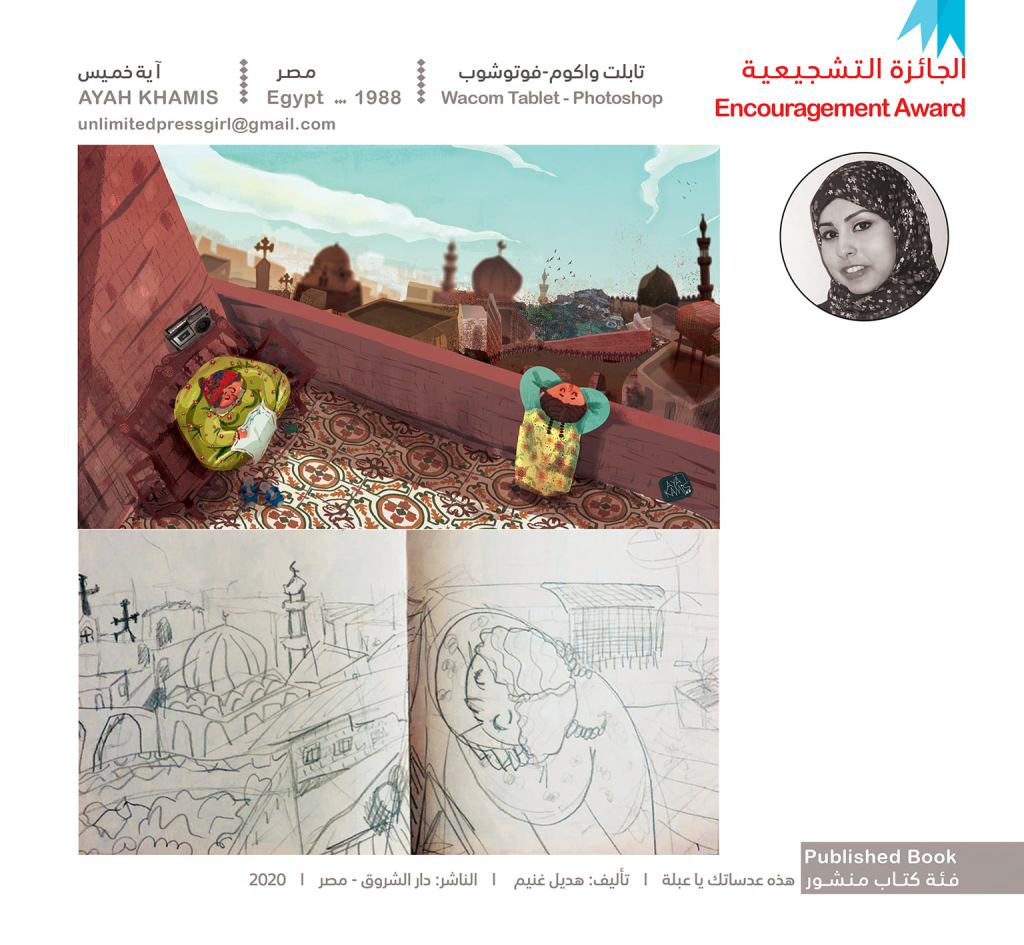 وفاز بالجائزة الأولى محمد طه من مصر عن رسم قصة النافذة للكاتبة عفاف طبالة ومن إصدار دار نهضة مصر.