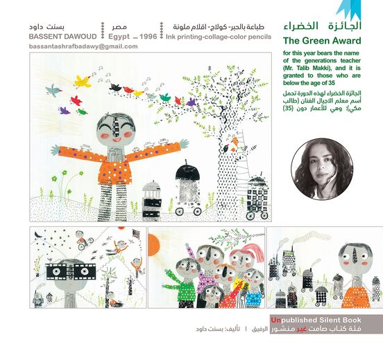 والجائزة الخضراء لهذه الدورة تحمل اسم معلم الأجيال الفنان العراقي طالب مكي وهي للأعمار دون 35 عامًا وفازت بها الرسامة المصرية الشابة بسنت داود عن قصتها الصامتة غير المنشورة “الرفيق”.