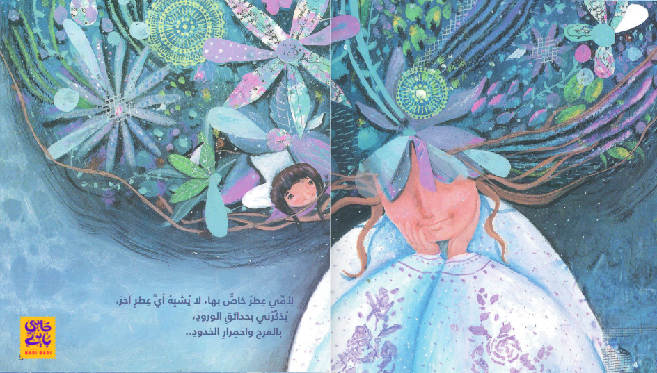 تصف الفتاة الصغيرة عطر أمها الذي لا يشبه أي عطر بأن فيه من رائحة الورود ومن قوالب الحلوى ومن الزينة وولائم العيد. بل وتستطيع بطلتنا أن تتعرف على هذا العطر الخاص في أي مكان وتشعر بالراحة والطمأنينة عندما تشمه على ملابسها. لكن في يوم من الأيام، يحدث شيئًا غريبًا، فهي تشم رائحة عطر أمها في المدرسة ولكنها لا تستطيع أن تجد أمها هناك. يا ترى كيف وصل عطر الأم إلى المدرسة؟ هل سرقه أحدهم ؟