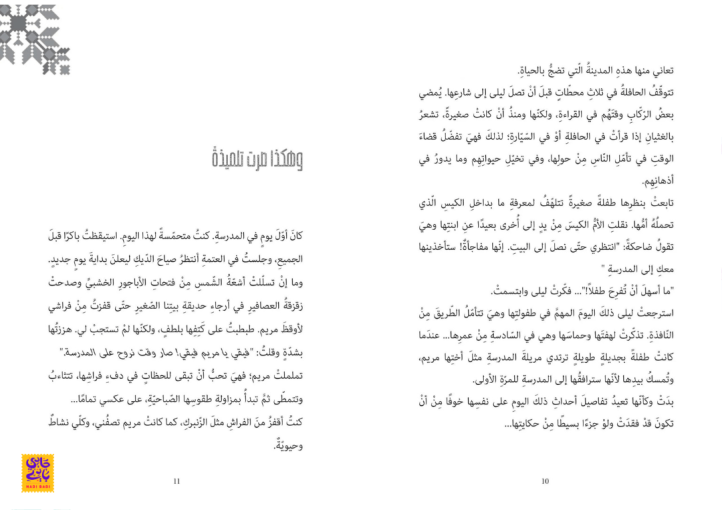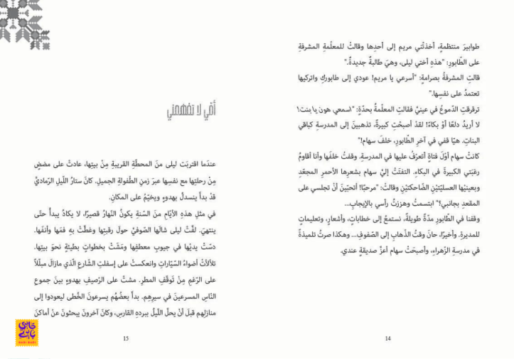 أما الحفيدة أروى، فهي طالبة في المدرسة الثانوية وتعد نفسها أمريكية أصيلة ولا تعترف بتاريخها وتراثها الفلسطيني. ولكن مع مهمتها للبحث عن رحلة الدمية، تجد أروى طريقها لأصولها، ويساعدها في ذلك أحد تلاميذ جدتها وصديقها الجديد سعد. ومن المميز في القصة أن نشهد تلك الاكتشافات الشخصية والتغيرات النفسية خطوة بخطوة مع أروى. وقد أضافت الكاتبة الكثير من الشخصيات المختلفة بمختلف خلفياتهم العرقية والفكرية مما زاد من ثراء القصة.